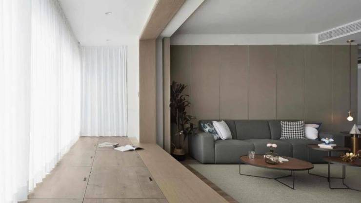 阳台地面与客厅打通:如果你的客厅(卧室)是直接铺地板,那么阳台这里可以直接通铺过去。如此,阳台和客厅的合二为一就更加完美,更具整体感。